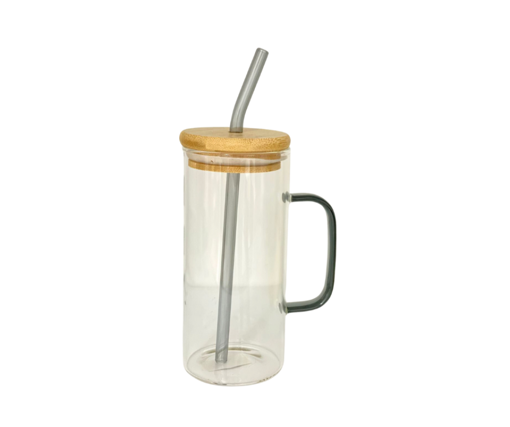 كاسة زجاج دائري بيد مزود بغطاء خشبي
