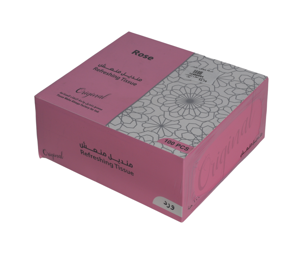 مناديل معطرة ومنعشة برائحة الورد - 100 منديل مغلف