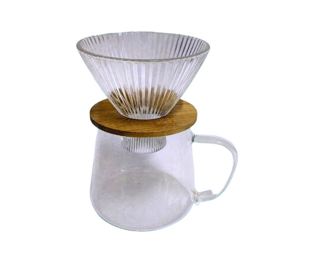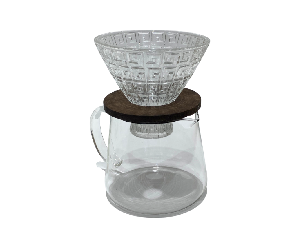 سيرفر قهوة زجاج مع فلتر زجاج بقاعدة خشب
