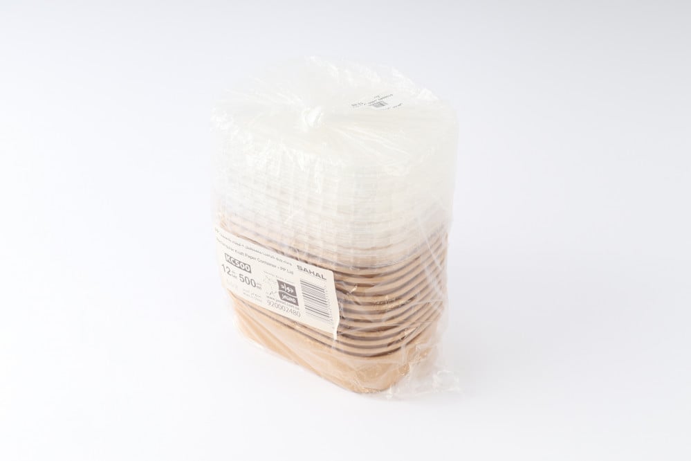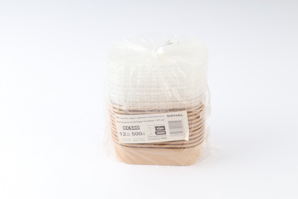 وعاء كرافت مستطيل + غطاء بلاستيك ( 500 مل ) 12 حبة