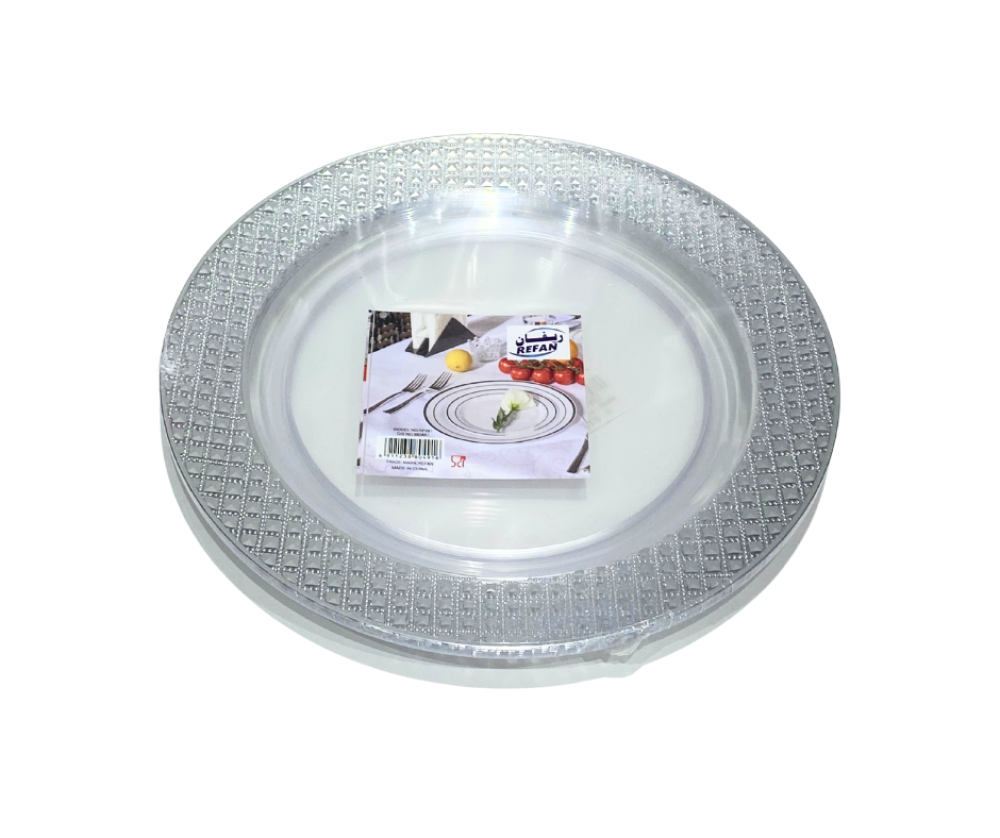 صحون بلاستيك شفافة مزودة بأطراف فضية