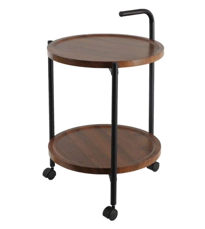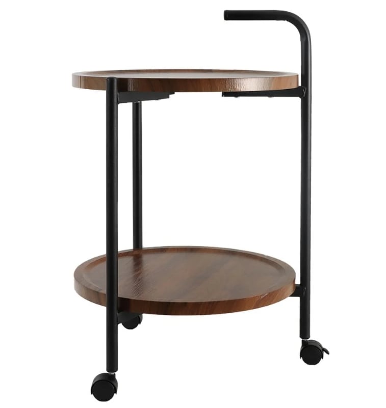 طاولة تقديم دائرية مع رفين وعجلات متحركة , متعددة الوظائف والاستخدامات, تصميم متين وشديد الثبات مع قاعدة معدنية , عملية ومثالية للإستخدام اليومي , سطح خشبي مقاوم للبقع , طاولة مودرن متنقلة ذات طابع كلاسيكي فريد تنتاسب مع أي نمط ديكور منزلي , يمكن إستخدام هذه الطاولة كطاولة طعام أو طاولة القهوة أو طاولة جانبية لغرف النوم والمعيشة والمكتب, عجلات متنقلة مع مقبض لسهولة تحريكها في أي مكان , من القطع الأنيقة والعملية التي يمكن إقتنائها في منزلك .